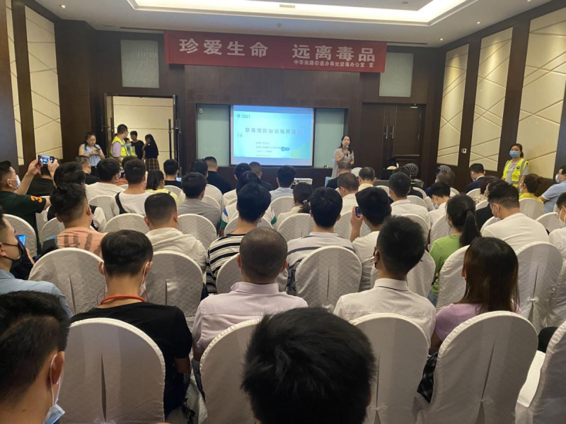为严格落实禁毒防范措施,预防毒品违法犯罪行为在重点场所内发生,在南明区禁毒办的统筹安排下,中华南路街道办事处联合中华南路派出所、区筑城阳光志愿者协会,组织街道辖区宾馆酒店、KTV、会所、夜总会、酒吧等重点行业场所负责人及从业人员共计100余人开展了禁毒知识培训。